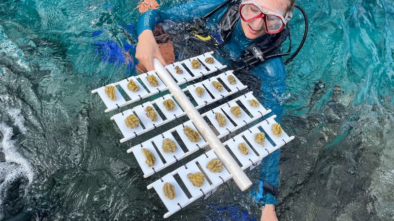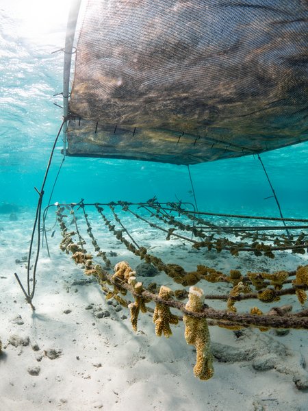 Diep onder water hangen jonge koraaltakken aan touwtjes te wiegen in het ritme van de zee. Elk stukje is een toekomstig rif. Een plek waar vissen tussendoor schieten, het water vol leven is en kleur terugkeert in de zee.