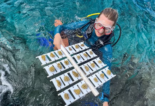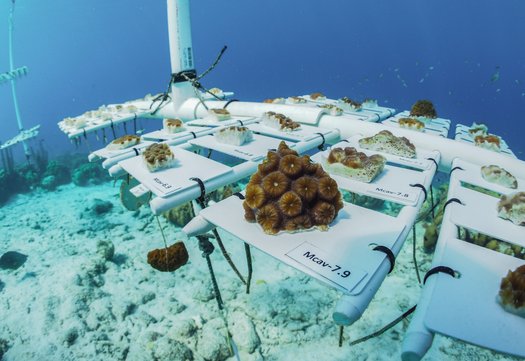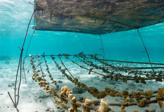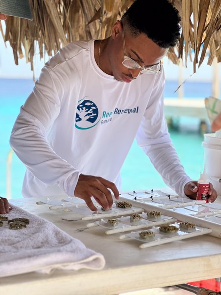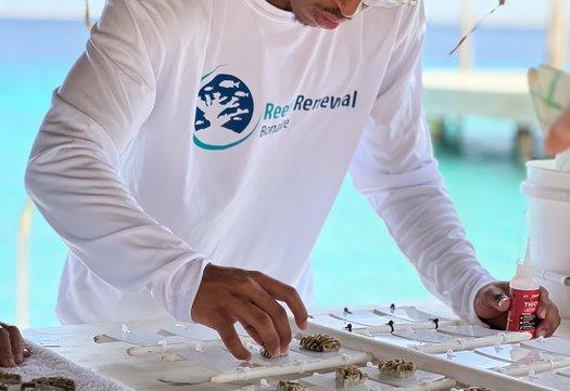 Reef Renewal Foundation Bonaire werkt aan actief rifherstel met een vijfjarenplan. In drijvende kwekerijen groeien genetisch diverse koralen op tot sterke kolonies. Deze worden uitgeplant op plekken waar het rif beschadigd is, zodat ze daar verder uitgroeien tot volwaardige, levende structuren.